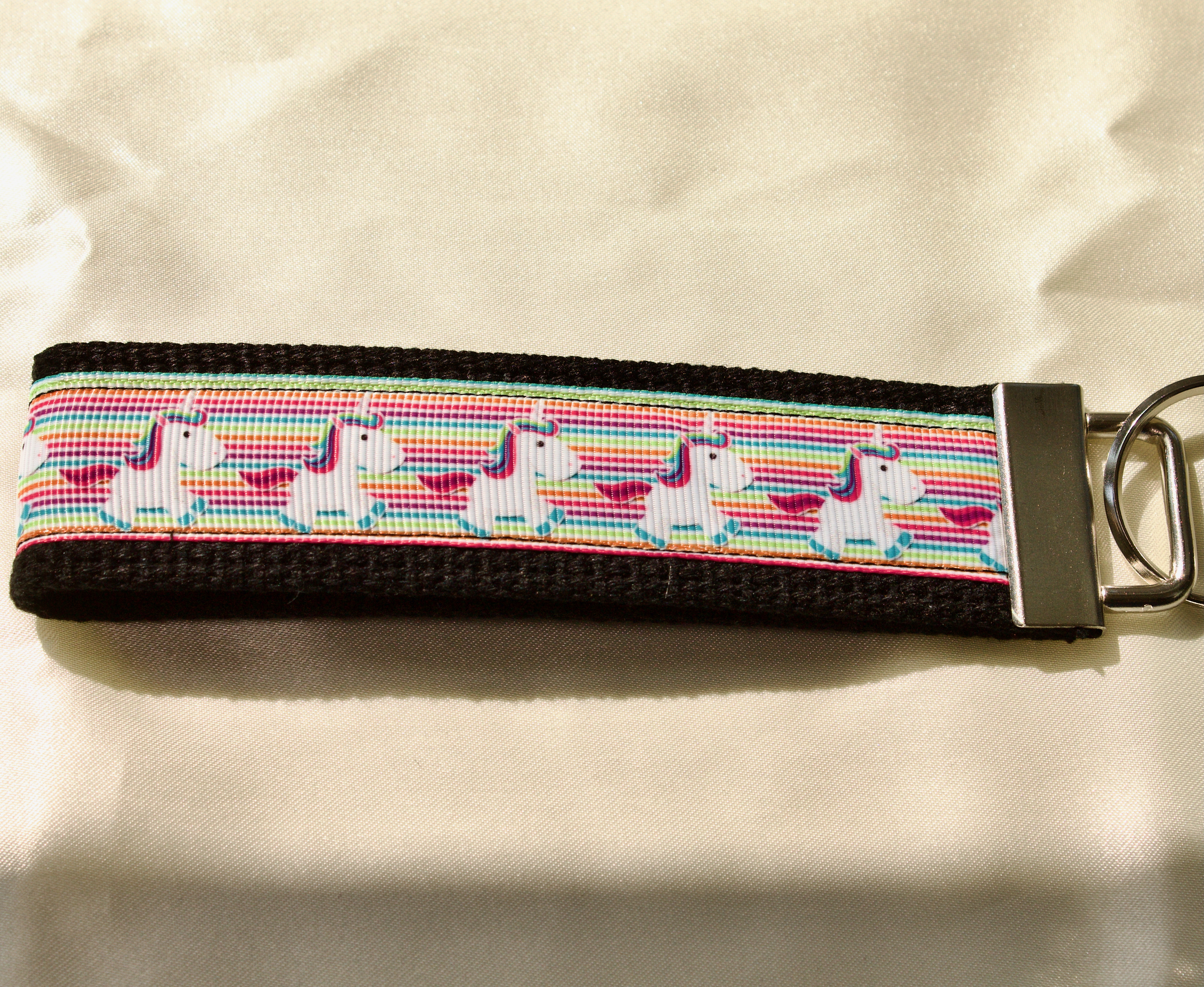 Flash a bit of your wild side with these animal themed fob wristlets! Each fob wristlet is made from heavyweight webbing and stitched beautifully printed ribbon. Size fits most wrists.